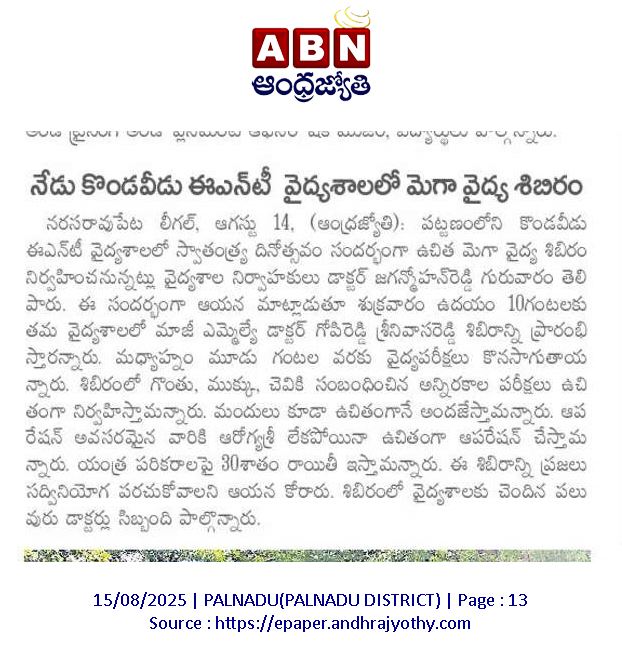 Kondaveedu ENT Hospitals.